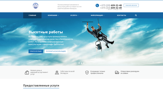| SEO-описание | Компания "ПавиолАльп": промышленный альпинизм, высотные работы, фасадные работы, кровельные работы в Бресте. Звоните ☎ +375 (33) 6093249, +375 (29) 6093248 |