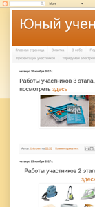 | AI-анализ | The web project "Юный ученый" (Young Scholar) is a blog featuring information about a competition for inventing a new electrical appliance. The competition has several stages, and the results are published on the site. Participants can share their work on social media platforms like Facebook and Pinterest. The blog also allows visitors to subscribe and receive updates via email. The competition began in 2017 and consists of three tours, with the first tour taking place from November 13 to 20, the second tour from November 20 to 25, and the third tour from November 28 to 30. The results of the competition were announced on December 1, 2017. The blog was last updated on October 25, 2016, with an invitation for people to subscribe. |