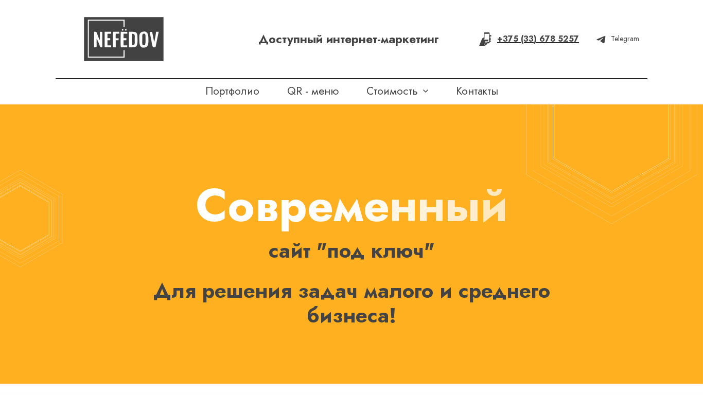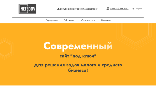 | AI-анализ | The portal offers website and landing creation in Belarus with marketing promotion. A 'turnkey' site. Contact number: +375 (33) 678 5257. Telegram. Portfolio QR menu. Site creation, landing creation, internet store creation, site promotion, and context advertising. CRM integration, contacts. Quick, convenient, understandable, selling, secure, adaptive site. Suitable for small to medium-sized businesses. Ideal for small online stores (up to 200-300 permanent products), furniture companies (production and manufacturing), unique product producers and first suppliers, freelancers, experts, consultants (lawyers, psychologists, business consultants, hairdressers, leatherworkers, etc.), photography studios, clinics, service companies, bakeries, confectioneries, restaurants, and more. Not suitable for large online |