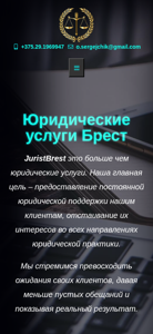 | AI-анализ | The portal JuristBrest offers legal consultation, document preparation, and filing of lawsuits in Belarus. It provides professional legal advice in Belarus for company registration, amendments to the charter, reorganization of businesses, and legal outsourcing, among other legal services. JuristBrest aims to provide continuous legal support to its clients, advocating for their interests in various areas of legal practice. The firm strives to exceed client expectations, offering fewer empty promises and delivering tangible results. The contact details are +375.29.1969947 and o.sergejchik@gmail.com. Services include registration of legal entities, assistance in obtaining work licenses abroad, employment services for foreigners in Belarus, IT law, charter amendments, legal outsourcing, debt recovery, and company reorganization or liquidation. Cl |