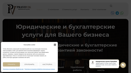 | AI-анализ | The website is a legal and accounting services provider based in Minsk, Belarus, with the domain name pravovik.by. The title of the website is "Юридические и бухгалтерские услуги для Вашего бизнеса" (Legal and Accounting Services for Your Business). The description includes services such as company registration, liquidation, bankruptcy, and accounting support. The keywords and top_words data indicate a focus on legal and accounting services, business, company registration, liquidation, and bankruptcy. The website uses cookies for user experience and data storage purposes. |