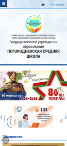 The website of Pogorsh School is an educational resource based in the village of Pogrodno, Wororovsky district, Grodno region, Belarus. The website provides information about the school, its structure, and the services it offers. Keywords related to the school's activities include 'year', 'work', 'detailed information', 'school', 'museum', 'organization', 'schedule', 'plan', 'institutions', 'admission', 'days', 'work', 'prevention', and 'education'. The school is a state educational institution under the Ministry of Education of the Republic of Belarus, and offers various services such as electronic application, hotline, and information about the institution. The website also includes information about the admission process, including contact details and schedules for document submission. The structure of the school and its catalog of services are also provided, along with the school