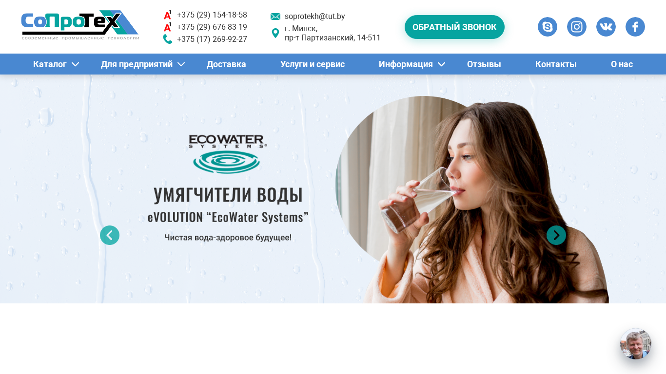 | SEO-описание | ООО СоПроТех предлагает купить системы для очистки воды по доступным ценам от первого официального дилера в РБ. Оригинальная продукция, произведённая в США. Тел. +375 (17) 269-92-27 |