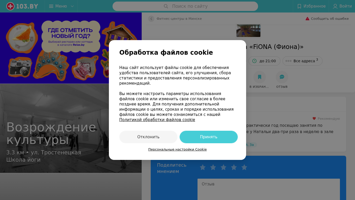| SEO-описание | Студия фитнеса FiONA (Фиона) Минск пр-т Победителей 3a – телефоны, время работы, отзывы и схема проезда в каталоге медицинского портала 103.by. |