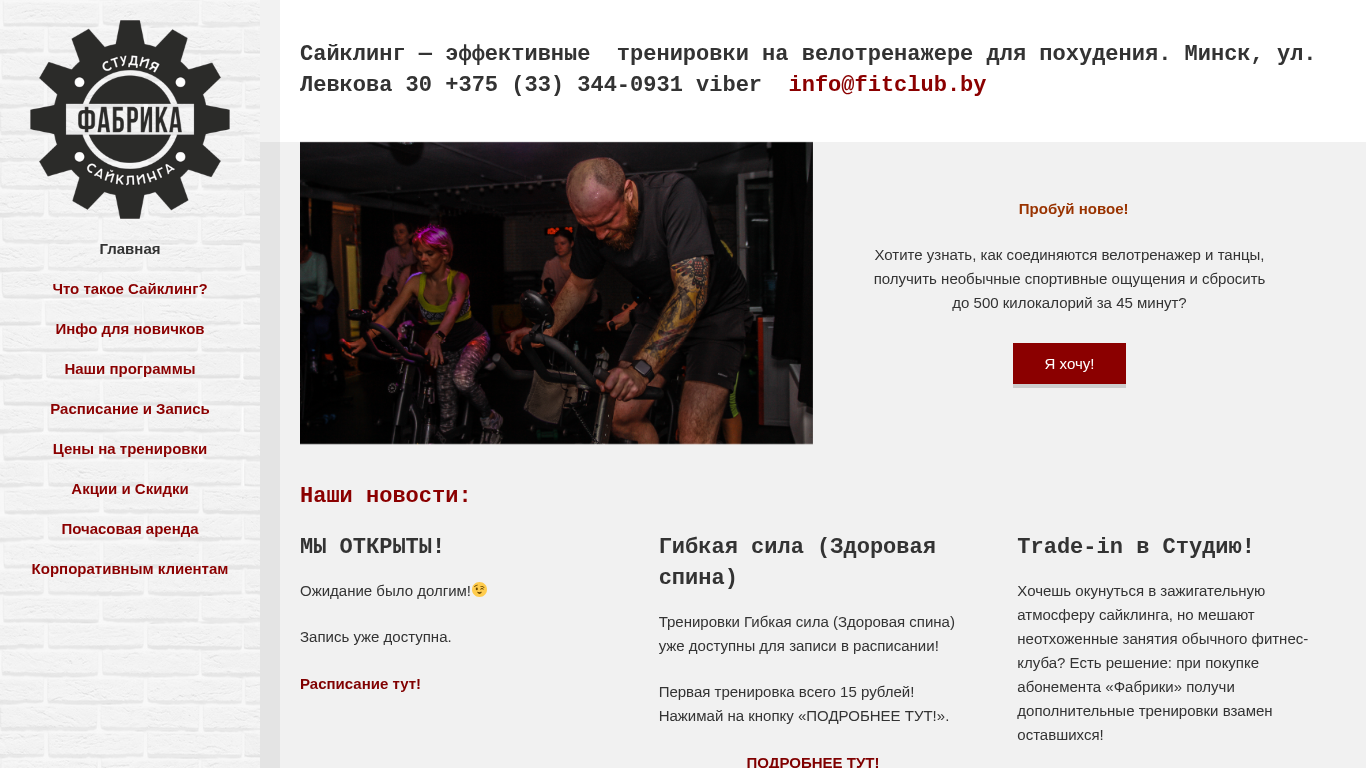 | Адрес | аренда, Корпоративным клиентам, Сайклинг — эффективные тренировки на велотренажере для похудения. Минск, ул. Левкова 30 |