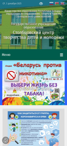 | AI-анализ | --- This online resource belongs to the Stolbtsy Center for Children and Youth Creativity, an educational institution under the Ministry of Education of the Republic of Belarus. The website provides information on the center's organization, leadership, educational programs, and various events such as the Republican Week of Additional Education, Financial Literacy Week, and the Day of National Unity. The site includes a calendar of significant dates, safety guidelines, and information on administrative procedures and application forms. The center offers a rating evaluation portal, safety guidelines for students, and rules for teachers and parents. Visitors can find contact information, a telephone directory, and information on the center's hours of operation and electronic application process. The website also includes sections on the center's history, accomplishments, and goals. |