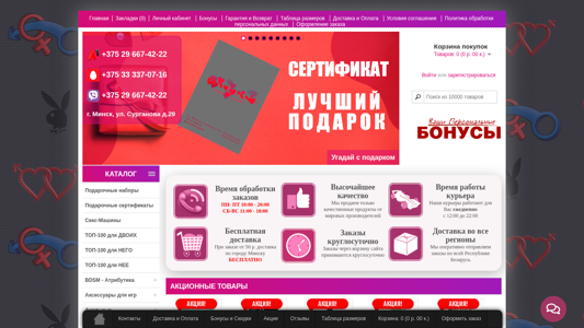 | AI-анализ | The portal SexMag.BY is an extensive online sex shop offering a wide range of intimate products and sex toys with free delivery in Minsk and Belarus. The selection includes over 15,000 items, making it one of the largest online intimacy stores. The website is a discreet internet shop for adult products, providing anonymous delivery throughout Belarus. The catalog features various categories such as anal toys, dildos, vibrators, lubricants, and BDSM accessories. The site also offers role-playing games, romantic items, and an erotic accessories section. Users can find sex machines, top-rated products for couples, and a wide selection of podiums, restraints, masks, and other accessories for sexual games. The site also includes a furniture and bedding category, as well as a section for role-playing scenarios. The website is available in Belarusian |