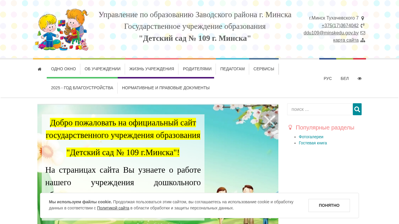 | AI-анализ | The portal "Ясли-сад" is a website run by the State Educational Institution "Children's Garden No. 109" in Minsk. It provides information about the kindergarten's administrative procedures, contacts, and schedules. The website uses cookies and has a map of its location. It offers forms for various administrative procedures, contact information for different services, and a policy on handling personal data. The site includes sections on the kindergarten's history, pedagogical team, and services offered, as well as educational resources and a library. It also features interactive maps showing availability of spaces within the kindergarten and safety instructions. The website is operated by the Minsk Education Department and includes various normative and legal documents. |