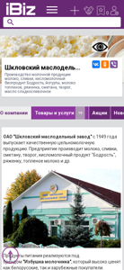 | AI-анализ | This online resource is dedicated to Shklovsky Butter Factory OAO, a Belarusian company specializing in the production of various dairy products. The website provides information on the company's offerings which include milk, cream, kefir, Bodrost bio-product, cottage cheese, sour milk, butter, and condensed milk. The products are available for both retail and bulk purchases. The website includes a section for company news and contact information. |