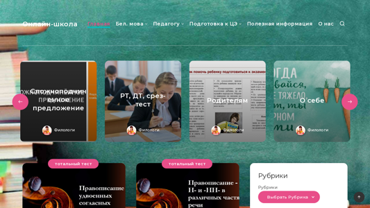 The web project <Online-school — Education online> is a Belarusian language learning platform. It offers various resources for students, including information on grammar, phonetics, and vocabulary. Users can prepare for exams with tests and quizzes, and the site provides recommendations and warnings for common errors. The project covers topics such as parts of speech, sentence structure, and punctuation. It also includes a section for students to learn about the school itself. The site's content is organized around different themes, such as 'What is important for philologists?' and 'About the time.' A centralized exam is scheduled to take place in Belarus on January 28, 2024. The site includes sections for students and parents, as well as information on how to fill out exam answer sheets.