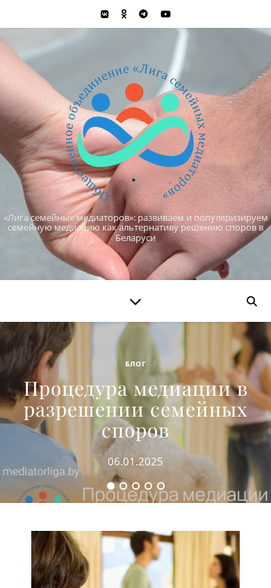 | AI-анализ | This online resource is the official website of the "Лига семейных медиаторов" (League of Family Mediators), a non-commercial and voluntary republican public association in Belarus dedicated to the development and promotion of family mediation as an alternative dispute resolution method. The site includes information on the association's statute, membership, fees, dispute resolution procedures, and projects. It also offers resources for mediators, such as legal literature and a mediator registry, and provides news and contacts for those seeking mediation services. The website features a blog with articles on family mediation, including topics on divorce, child custody disputes, and the mediation process. Projects include the "Academy for Parents" and the "Implementation of Mediation Technology in the Activities of TCSON and SPC: Developing Family Mediation as a Social Institution." There is |