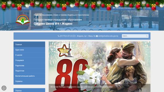 | Адрес | горисполкома, Государственное учреждение образования, Средняя Школа №4 г. Жодино, (01775) 6-57-22, г. Жодино, пр-т. Мира, 8а |