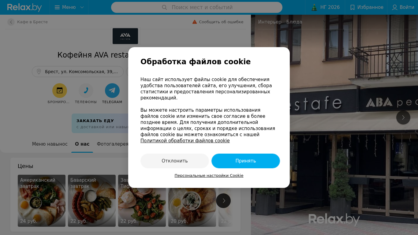 | SEO-описание | Кофейня с завтраками AVA restafe (Ава рестафе) в Бресте, ул. Комсомольская 39 – отзывы, телефоны, график работы и карта проезда на Relax.by |