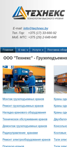 | AI-анализ | The website is a business platform for a Belarusian company named Технекс, located in Минск. The main focus of the website is on the design, installation, and repair of heavy-duty cranes, specifically from the ABUS manufacturer. The site also offers reparation services for undercarriage paths and guarantees the quality of its services. The keywords indicate that the company provides various services for cranes, including installation, repair, and sales of parts. The site offers information about its history, certifications, and customer reviews. The company's contact information includes an email address, a landline phone number, and a mobile phone number. The site also includes sections on the company's services, such as the repair and reconstruction of crane equipment, and the renting of control weights. The site offers a range of crane types, including mobile, fixed, and under-bridge cranes, |