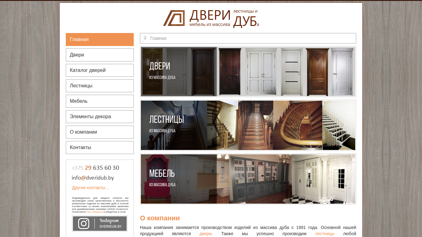 | SEO-описание | Двери, лестницы и мебель из массива дуба по индивидуальным заказам, эскизам и размерам купить или заказать в Минске, Беларуси. |