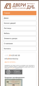 | Адрес | сертифицирована:, Больше документов..., Главная, О компании, Наша компания занимается производством изделий из массива дуба с 1991 |