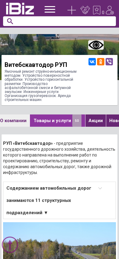 | AI-анализ | <html lang="ru"> <head> <meta charset="UTF-8"> <meta name="description" content="РУП «Витебскавтодор» - предприятие государственного дорожного хозяйства, деятельность которого направлена на выполнение работ по проектированию, строительству, ремонту и содержанию автомобильных дорог, также дорожной инфраструктуры. Содержанием автомобильных дорог занимаются 11 структурных подразделений. К основным видам деятельности также относятся: проектные работы; работа по эксплуатации автомобильных дорог; производство асфальтобетонной смеси и |