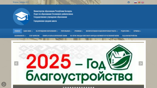 | AI-анализ | This online resource is a website for the City of Stolin's kindergarten-school complex in Belarus. The title of the website is 'Городнянский УПК ясли-сад - средняя школа' which translates to 'City of Stolin's kindergarten-school complex - secondary school'. The description provides information about the school, including the date 'Вторник, 2 декабря 2025' and the languages offered, such as Belarusian, Russian, and others. Keywords associated with the website include 'образования' (education), 'информация' (information), and 'безопасность' (safety). The top words suggest that the website provides detailed information for parents about the rules, schedule, and organization of the school. The domain name is 'grd.roo-stolin. |