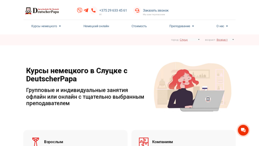 Название / ЗаголовокКурсы немецкого языка DeutscherPapa в Слуцке — Школа немецкого языка в Слуцке с DeutscherPapa