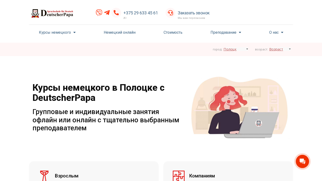 | SEO-описание | Школа немецкого языка в Полоцке с DeutscherPapa Курсы немецкого в Полоцке с DeutscherPapa |