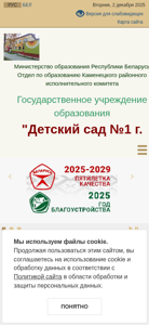 | AI-анализ | The website "Детский сад №1 г. Высокое" (Children's kindergarten No.1 in the city of High) is operated by the State Educational Institution of the Kameneцkiy District Executive Committee in Belarus. The kindergarten's title and location are mentioned in the title and description tags. The top words indicate that the website contains information on the kindergarten's size, education, reading, address, news, and contacts. The website is designed with a standard layout and uses a medium-sized font and standard inter-letter spacing. The color scheme is white, with black text. Images are turned off but can be viewed in black and white. The website provides information on the kindergarten's administration, hours of operation, leadership, admission procedures, and educational materials. It also offers consultations for parents of young children not attending kindergarten |