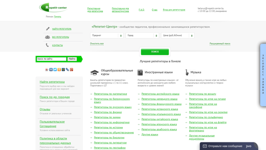 | AI-анализ | The website "Baza repeytorov Golmely" (Repository of Teachers in Gomel) is a free platform for finding and hiring teachers or tutors in Gomel, Belarus. With over 14 verified teachers offering instruction in various subjects, users can easily search for and select the best fit for their needs. The website features a registration process for teachers and tutors, an FAQ section, and a contact page for "Repetit-Tsentr" (Teaching Center). Subjects range from Russian and Belarusian languages to mathematics, music, and physical education. The website is open for teacher and tutor registrations from 10:00 to 22:00 every day. The region served is Gomel. |
