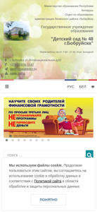 | AI-анализ | The portal 'Детский сад № 48 г.Бобруйска' is a government educational institution website, providing information on the preschool 'Детский сад № 48 г.Бобруйска' in the city of Bobruisk, Belarus. The website includes details on the operating hours, administrative procedures, and contact information. It also features sections on the structure of the institution, its goals and functions, and various educational and support services. Visitors can find information on enrollment, fees, and available resources, as well as access documents such as application forms and policy statements. The site also includes a section for popular inquiries and a directory of related organizations. Additionally, it offers an electronic application system, a map of the location, and a news archive. The website is operated by the Ministry of Education of the Republic of Belarus, the Bobruisk city administration |