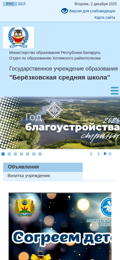 | AI-анализ | The portal "Берёзковская средняя школа" (Berezki.hotimsk.edu.by) is the official website for a secondary school in Belarus. The title of the website is 'Берёзковская средняя школа' which translates to 'Berezko Middle School'. The description section contains information about the school, including its administration, educational programs, and contact information. The website primarily focuses on providing information related to the school's schedule, administrative procedures, and various services for students and parents. The most frequent keywords on the website include 'питания' (food), 'читать' (read), 'далее' (further), '2025' (year), 'работы' (jobs), and 'образования' (education). The website also provides information on extracurricular activities, sports |