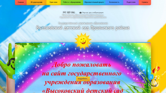 | AI-анализ | This website is for the High School Kindergarten of the Orshansky District in Belarus, called "Vysokovsky Detsky Sad". The website provides information about the institution, including its license for educational activities, charter, registration certificate, contacts, management team, working hours, pedagogical staff, and tasks and functions. It also features a news section, photo gallery, and details about admission procedures, administrative processes, and various policies. The website offers additional educational services on a paid basis and includes sections on patriotic education, corrective-pedagogical assistance, inclusive education, and social-psychological services. The website also provides information on safety and security measures, including cybersecurity and electrosecurity, as well as various community resources and support services for families. The website is accessible at ds-vys.goroo-orsha.by. |
