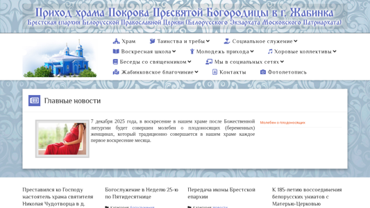 | SEO-описание | Сайт прихода храма Покрова Пресвятой Богородицы в г. Жабинка. |