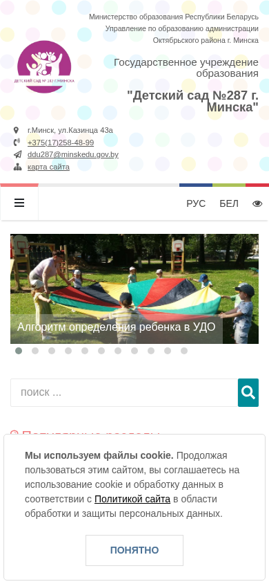 | Название / Заголовок | ГУО "Детский сад № 287 г. Минска" |