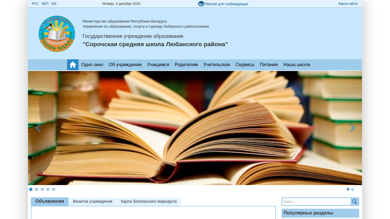 | Название / Заголовок | Сорочская средняя школа Любанского района |