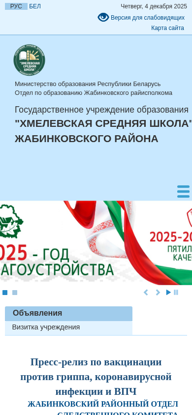 | AI-анализ | The portal "Хмелевская средняя школа" (Hmelevo.zhabinka.edu.by) is a website operated by the State Educational Institution "ХМЕЛЕВСКАЯ СРЕДНЯЯ ШКОЛА" in the Zhabinka district of Belarus. The site primarily provides information for parents, students, and the wider community about the school's schedule, news, and educational programs. Keywords associated with the site include 'school', 'education', 'schedule', 'parents', and 'information'. The site includes sections on the school's administration, library, contact information, and documents related to accreditation and licensing. Additionally, there are resources for parents, including recommendations on communication with teenagers and information on enrollment in the first grade. The site also features a section on computer games and their potential educational |