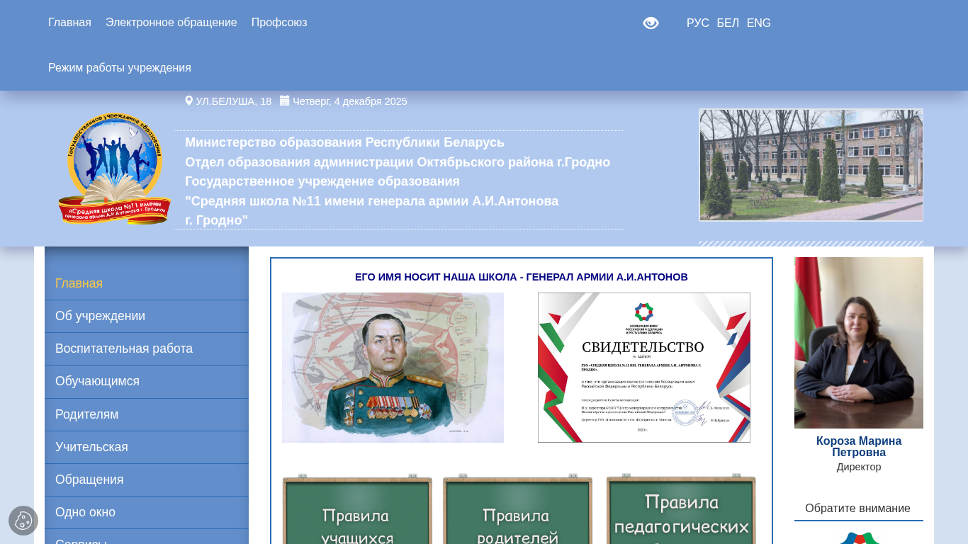 | Название / Заголовок | Средняя школа №11 имени генерала армии А.И.Антонова г. Гродно |