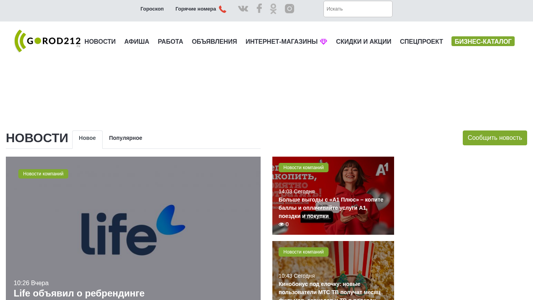 | SEO-описание | Городской портал Витебска. Новости, реклама, объявления, афиша мероприятий, работа, вакансии, резюме, скидки и акции, спецпроекты. Только самые актуальные новости. Прогноз погоды, расписание транспорта, гороскоп всех знаков зодиака на сегодня. экстренные службы и горячие номера, курсы валют. |