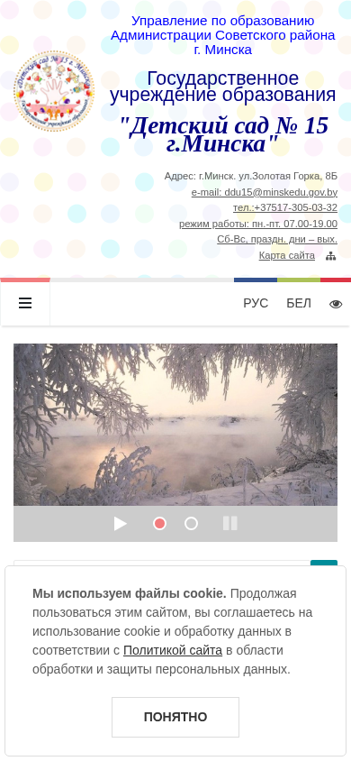 | Адрес | района г. Минска, Государственное учреждение образования, "Детский сад № 15 г. Минска", Адрес: г. Минск. ул. Золотая Горка, 8Б |