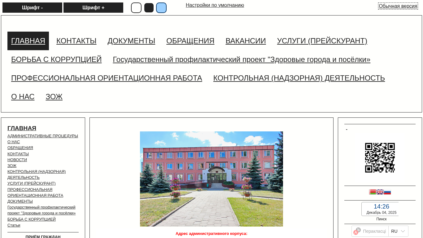 | Адрес | учреждение, "Пинский зональный, центр гигиены и эпидемиологии", Адрес :, 225710, Брестская область, г. Пинcк, ул. Гайдаенко, 5 |