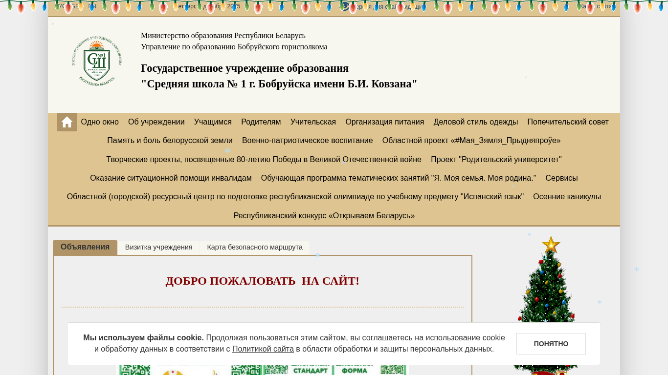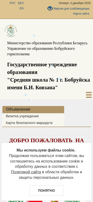 | AI-анализ | This online resource is a website for Middle School No. 1 in Bobruisk, Belarus. The title of the site is "Средняя школа № 1 г. Бобруйска" (Middle School No. 1 in the City of Bobruisk). The description contains keywords such as "school," "Bobruisk," "Belarus," and "education." The top words on the site include "work," "rules," "plan," and "school," with the words "Bobruisk" and "Belarus" appearing frequently. The site does not have any images enabled, and the color scheme is black and white. The content is in the Belarusian language. |