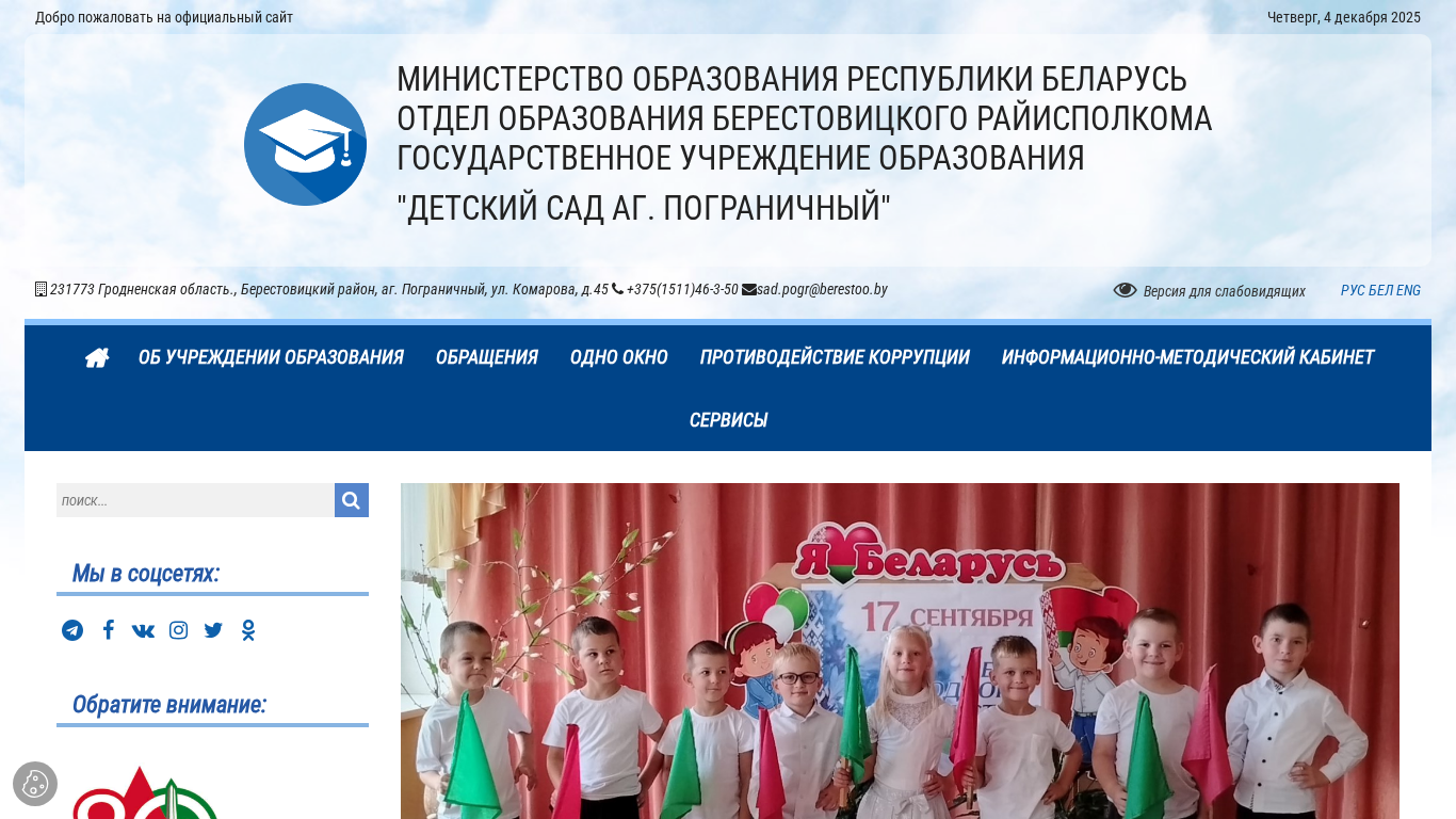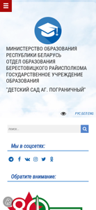 | AI-анализ | The portal 'Детский сад аг. Пограничный' (Children's kindergarten in the village of Pogranichny) is an official website of a state educational institution located in Brest Oblast, Brestovitsky District, in the village of Pogranichny, on Komarova Street, house 45. The kindergarten falls under the Ministry of Education of the Republic of Belarus and the Brestovitsky District Executive Committee. The website provides information on the institution's structure, tasks, functions, and educational activities. Visitors can find details about the kindergarten's management, licensing information, work schedule, and various policies. The site also includes sections for news, photos, and job vacancies. Additionally, there is a section for parents and guardians with information on enrollment procedures, group formation, and a contact page |