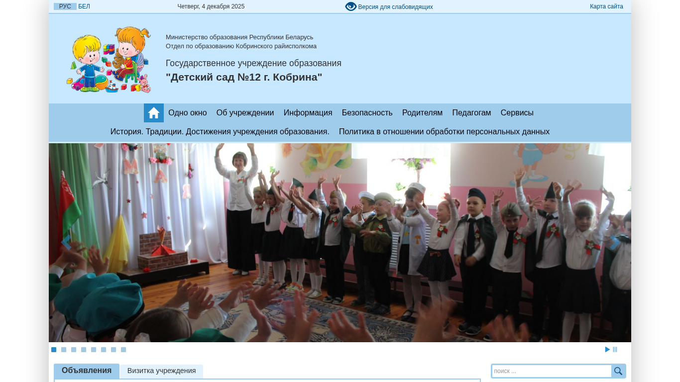 | Название / Заголовок | Детский сад №12 г.Кобрина |