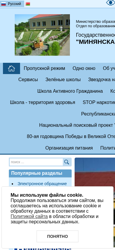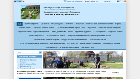 | AI-анализ | The web project "Минянская СШ" (Minyanskaia SSH) is a website for a secondary school located in the Kobrin region of Belarus. The main topics of the site include education, news, and information about the school. The title of the site is "Минянская Средняя Школа" (Minyanskaia Sredniaia Shkola), which translates to "Minyanskaia Middle School." The site uses a standard color scheme with a medium font size and standard inter-letter spacing. Images are disabled and the site has a black and white color scheme. The site includes sections for the Ministry of Education of the Republic of Belarus, information for teachers and students, and various services such as "Зелёные школы" (Green Schools) and "Звездочка на карте района" (Star on |