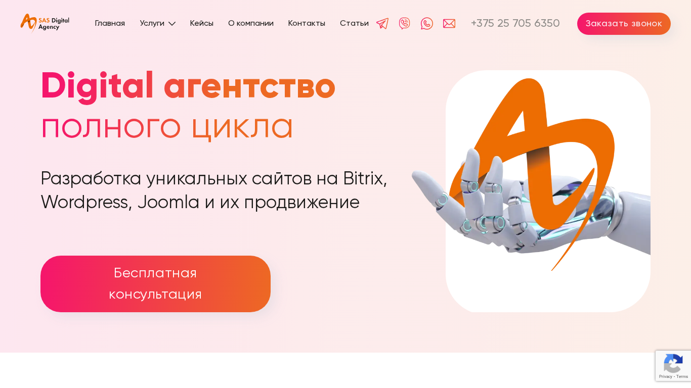 | SEO-описание | SAS Digital Агентство полного цикла. Разработка сайтов в Беларуси и их продвижение. Контекстная, таргетированная реклама, SEO-продвижение. |