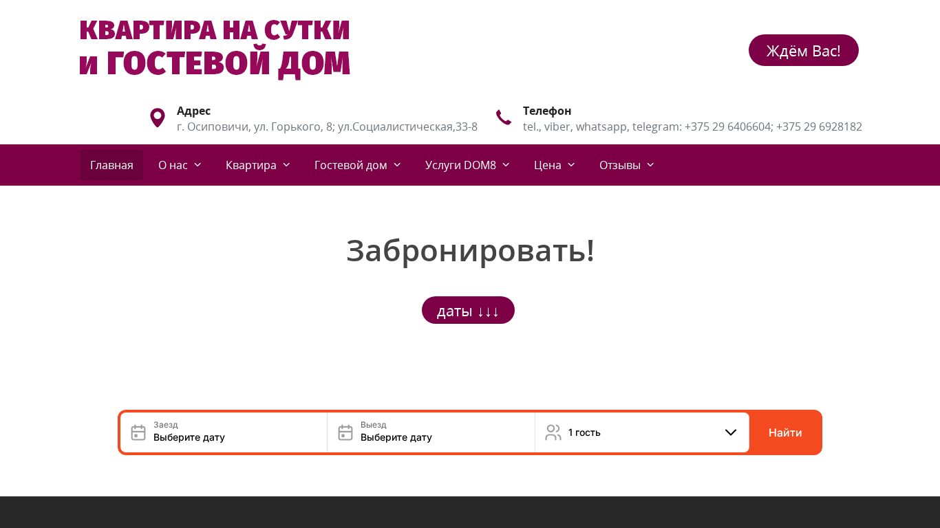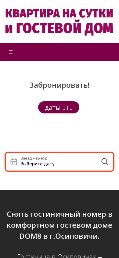 | Название / Заголовок | Квартира на сутки в Осиповичах | Гостиница Осиповичи - гостевой дом DOM8 посуточно |