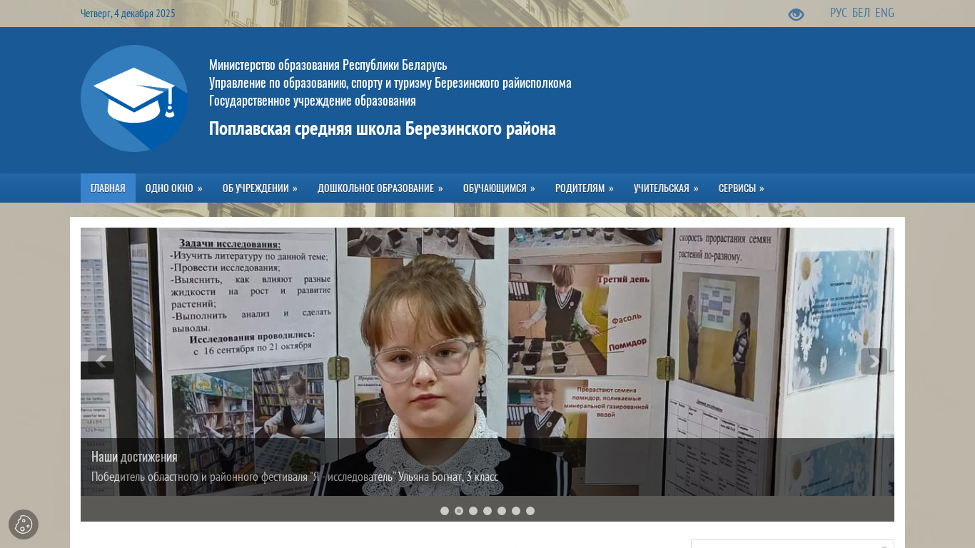 | Название / Заголовок | Поплавская средняя школа Березинского района |
