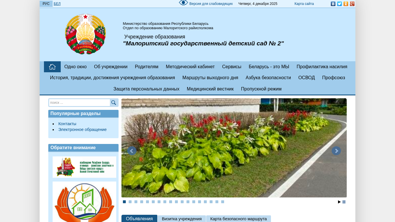 | Название / Заголовок | Ясли-сад №2 г.Малорита |