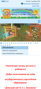 | AI-анализ | The web project "Ясли-сад №3 г.Ляховичи" (Kindergarten №3 in the city of Liahochy) is an educational institution's website. It provides information about the kindergarten's administration, schedule, application procedures, pedagogical staff, and various documents. The site includes pages on nutrition, patriotic education, parent consultations, and a history of the institution. Users can find information about the kindergarten's structure, leadership, and contact details. Additionally, there are sections for special education, parent resources, and future first-graders. The site offers forms for methodological work and a virtual cabinet for teachers. The content is organized into categories such as educational process, methodological associations, and effective pedagogical practices. The site includes a news archive, a guestbook, and search functionality. The site also offers a parents' consultation desk |