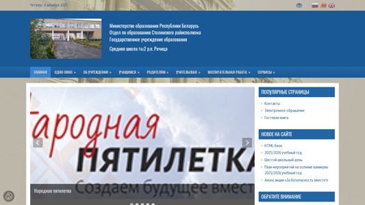 | AI-анализ | This online resource is dedicated to Middle School No. 2 in the regional administrative unit (r.p.) of Rechitsa, Belarus. The website was updated on Thursday, 4th December 2025, by the Ministry of Education of the Republic of Belarus, Sтолинский районы исполнительный комитет, and the State Educational Institution Middle School No. 2 in Rechitsa. The resource provides information on administrative procedures, contacts, electronic application, leadership, special permits, rules on the use of modern communication devices, conditions for student enrollment, access to student progress information, library, teacher's activities, data protection policy, school calendar, and various student clubs. The website also includes a section on employment opportunities for youth, information on school policies, and a 'School of Active Citizen' initiative. The domain is rp2.ro |