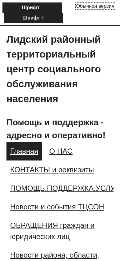 | Название / Заголовок | Лидский районный территориальный центр социального обслуживания населения |