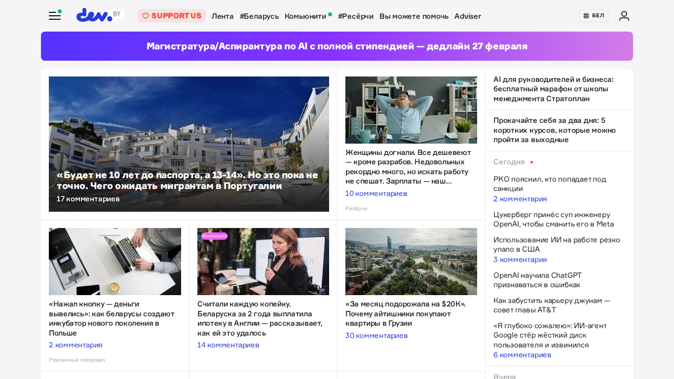 | SEO-описание | Главные новости ИТ-индустрии в Беларуси и мире. Каталог белорусских IT-компаний, а также вакансии, статистика зарплат и календарь событий, читайте на dev.by |