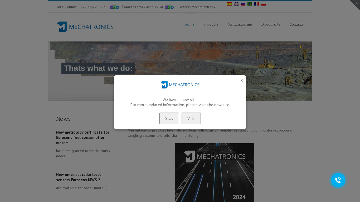 | AI-анализ | The website Mechatronics.by offers products and solutions for controlling fuel consumption and other machine parameters. Eurosens is a brand featured prominently on the site, with a focus on sensors for transport telematics. These sensors include fuel level sensors, axle load sensors, temperature sensors, and wireless solutions. The site also features mounting kits, accessories, and interfaces for various Eurosens products. Additionally, there are information displays, TPMS systems, and software available. The site provides detailed information on sensor calibration and installation, as well as manufacturing documents and FAQs. |
